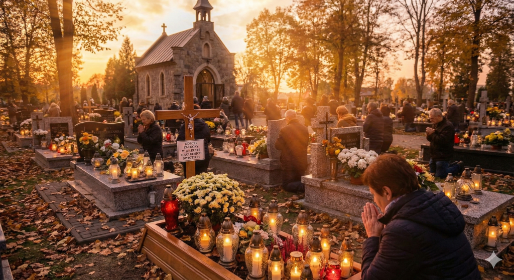 Nabożne nawiedzenie cmentarza i modlitwę za zmarłych (choćby w myślach).