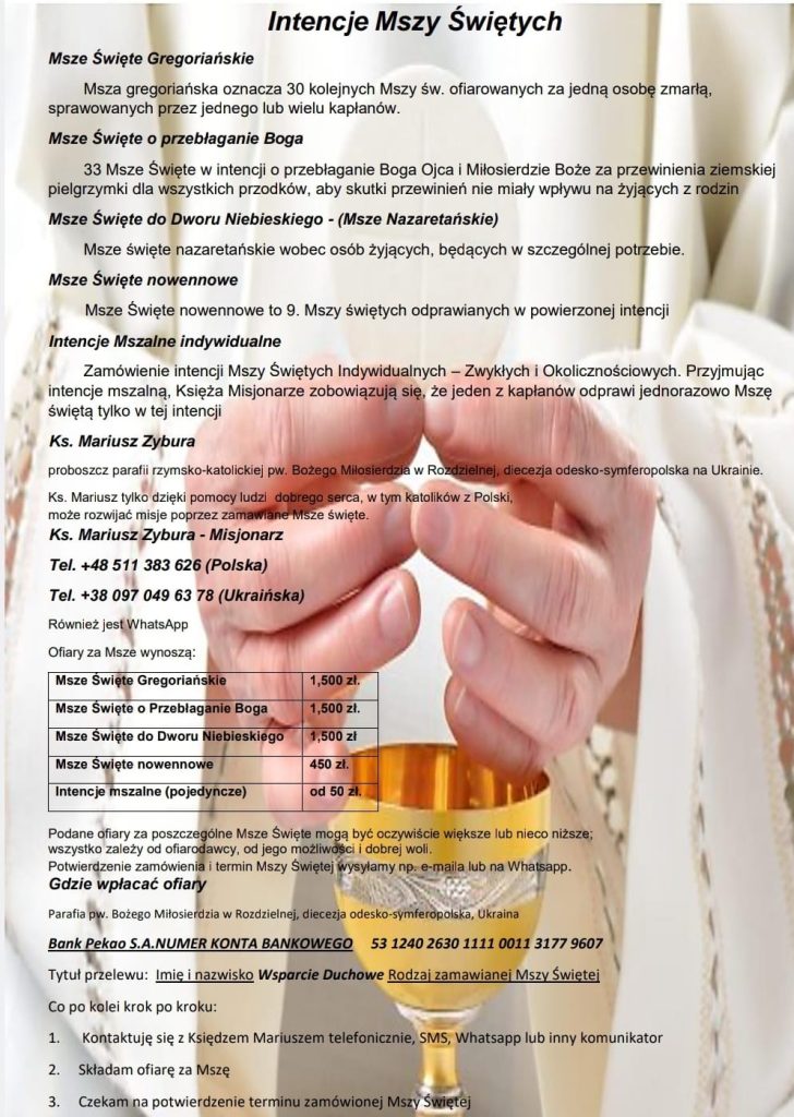 Składając ofiarę na Mszę Świętą, stajesz się uczestnikiem tego wielkiego dzieła miłosierdzia. To nie jest „opłata” za modlitwę, lecz dar serca, który podtrzymuje misję Kościoła i jest wyrazem Twojej ofiarności za zmarłych.